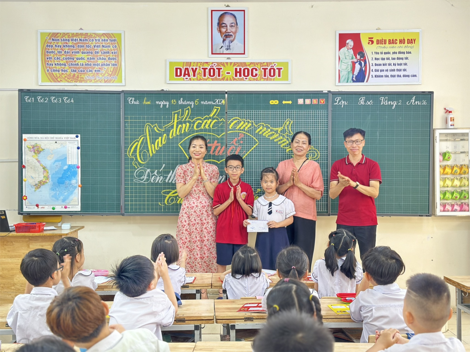 Trong buổi sinh hoạt dưới cờ tháng 5, Liên đội đã trao 1 xuất học bổng cho em Đỗ Trà My lớp 1A1. Và một phần đặc biệt trong những ngày tháng 5 lịch sử, chào mừng kỷ niệm 70 năm chiến thắng Điện Biên Phủ (7/5/1954 – 7/5/2024), Kỷ niệm 69 năm Ngày giải phóng Hải Phòng (13/5/1955 - 13/5/2024), bạn Trần Minh Khôi - chi đội 5A5 đã có một hành động rất đáng trân trọng. Bạn đã giành số tiền tiết kiệm được để trao tặng cho em Nguyễn Thị Ánh Sao lớp 1A3- một học sinh có hoàn cảnh đặc biệt khó khăn nhưng luôn chăm ngoan học giỏi có ý thức vươn lên trong cuộc sống. Minh Khôi là tấm gương sáng trong phong trào “Nói lời hay làm việc tốt” để các bạn học sinh toàn Liên đội noi theo.