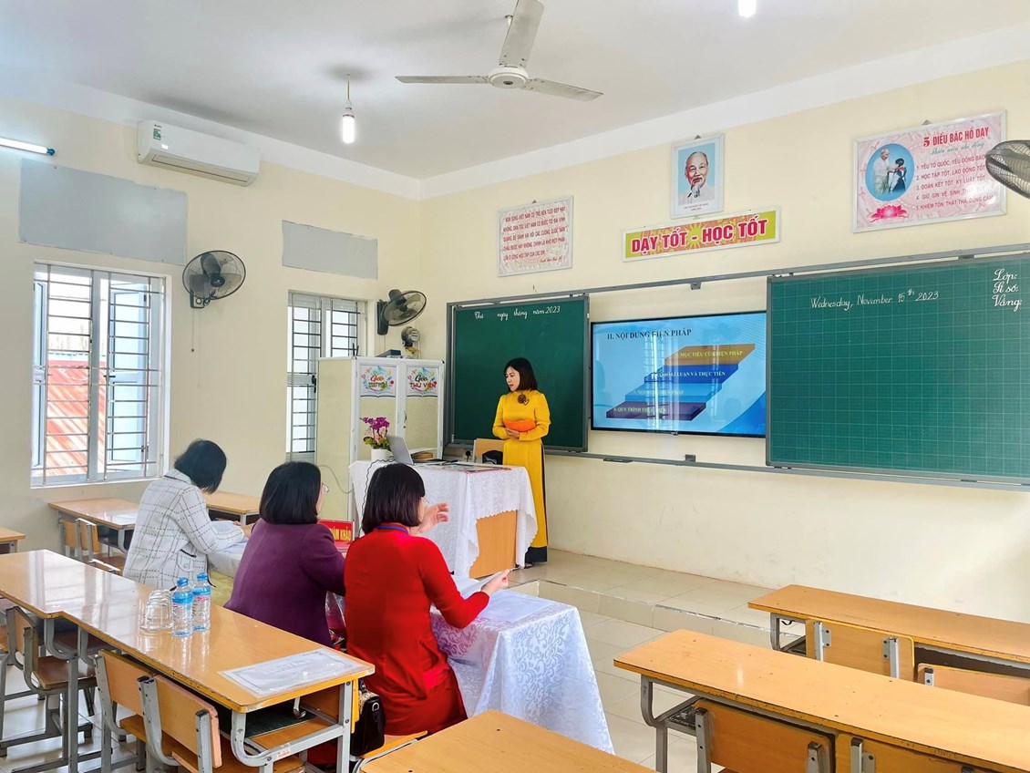 Các cô giáo thực hiện 2 nội dụng: thực hành dạy 1 tiết tại khối lớp mình đang giảng dạy và trình bày 1 biện pháp góp phần nâng cao chất lượng công tác giảng dạy của cá nhân tại trường đang công tác.
