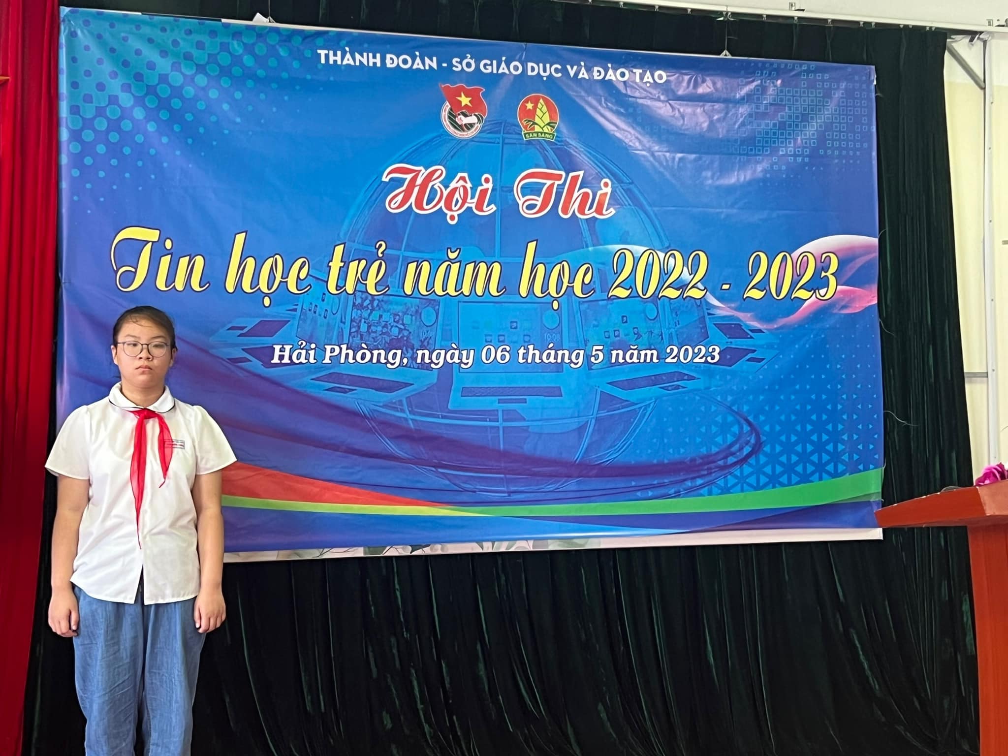Xin chúc mừng em Hoàng Nguyễn Vân Lam – lớp 5A5 trường Tiểu học Nguyễn Trãi đã xuất sắc đạt giải Nhì Hội thi Tin học trẻ cấp Thành phố và tiếp tục có mặt cùng với 4 bạn học sinh khác, đại diện cho Hải Phòng tham gia Hội thi Tin học trẻ toàn quốc, dự kiến sẽ diễn ra vào trung tuần tháng 6/2023.