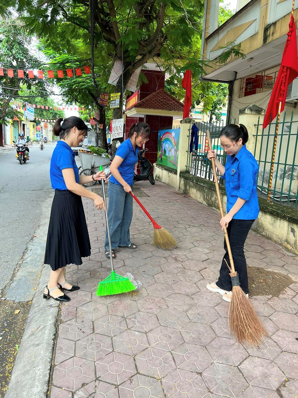 Thực hiện Công văn số 276-CV/ĐTN, ngày 17/09/2023 của Quận đoàn Ngô Quyền về việc triển khai đồng loạt Ngày Chủ nhật Xanh. Từ 6h30’ đến 8h00’ ngày 16/9/2023, Chi đoàn giáo viên trường Tiểu học Nguyễn Trãi, phường Đông Khê đã tổ chức ra quân xoá quảng cáo rao vặt sai quy định và tham gia cải tạo, sửa chữa, trang trí các thiết bị vui chơi cho thiếu nhi tại sân Thể thao liên hoàn.