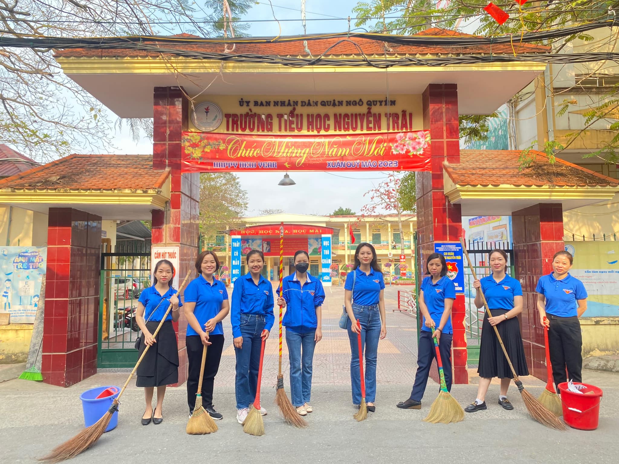 Chủ nhật, 19/3/2023 Chi Đoàn trường Tiểu học Nguyễn Trãi ra quân hưởng ứng “Ngày chủ nhật xanh” với các hoạt động như: thu góp rác thải, xử lý các điểm ô nhiễm môi trường; tổ chức xóa quảng cáo, rao vặt trái phép trên các bờ tường ở địa bàn phường Đông Khê.