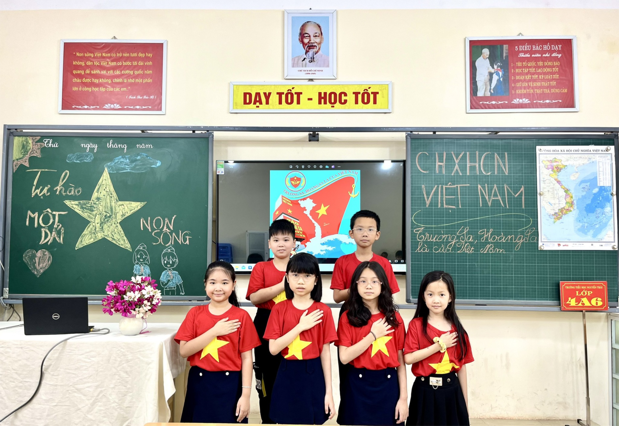 Treo bản đồ Việt Nam tại lớp học, nơi sinh hoạt Đội là hình thức tuyên truyền trực quan, giúp các em học sinh có thêm thông tin, kiến thức về đặc điểm địa lý, hành chính của đất nước; đồng thời là hành động cụ thể khẳng định chủ quyền, toàn vẹn lãnh thổ của đất nước. Ngoài việc treo bản đồ, Liên đội đã triển khai cho học sinh sinh hoạt chuyên đề “Tự hào một dải non sông” vào 15 phút sinh hoạt đầu giờ và trong các tiết sinh hoạt Đội, nhà trường cũng tổ chức lồng ghép các nội dung tuyên truyền về chủ quyền biên giới biển đảo Tổ quốc, các vùng lãnh thổ đất nước mang lại hiệu quả giáo dục cao.