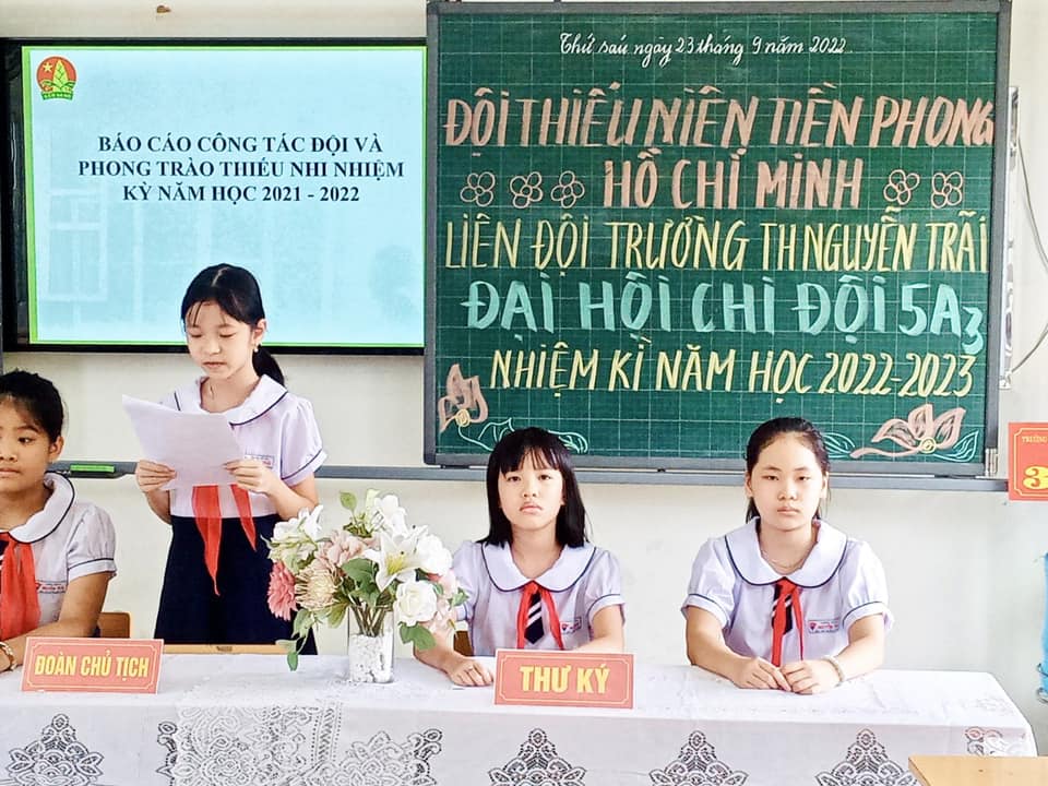 Thực hiện kế hoạch công tác Đội và phong trào thiếu nhi năm học 2022 - 2023. Căn cứ tình hình thực tế nhà trường, được sự hướng dẫn của Hội đồng đội cấp trên, sự quan tâm chỉ đạo của Ban giám hiệu nhà trường; tiếp nối thành công của Đại hội Chi đội điểm Chi đội 5A5, từ ngày 20-27/9/2022, Liên đội trường Tiểu học Nguyễn Trãi đã hướng dẫn các chi đội tổ chức Đại hội chi đội đại trà nhằm tổng kết đánh giá kết quả hoạt động nhiệm kỳ cũ; thảo luận phương hướng nhiệm kỳ mới và bầu ban chỉ huy chi đội nhiệm kỳ năm học 2022-2023.