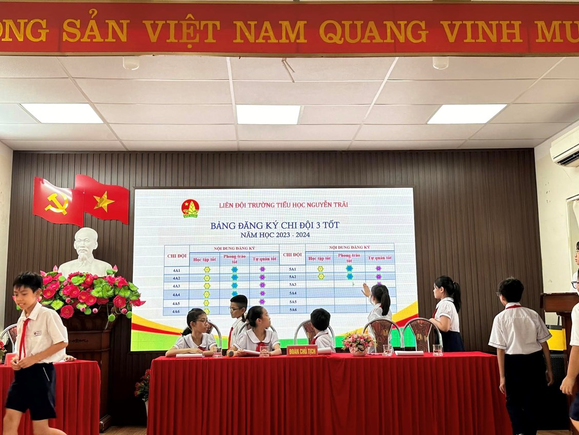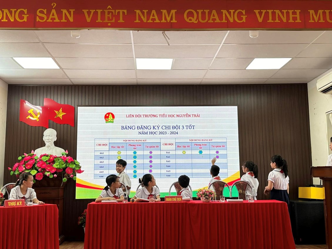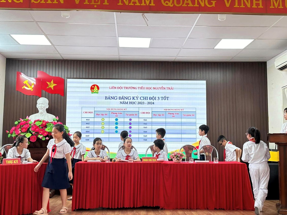 Thực hiện Chương trình công tác Đội và phong trào thiếu nhi năm học 2023 - 2024, chiều ngày 29/9/2023, Liên đội trường Tiểu học Nguyễn Trãi đã long trọng tổ chức Đại hội Liên đội nhiệm kỳ năm học 2023 - 2024.