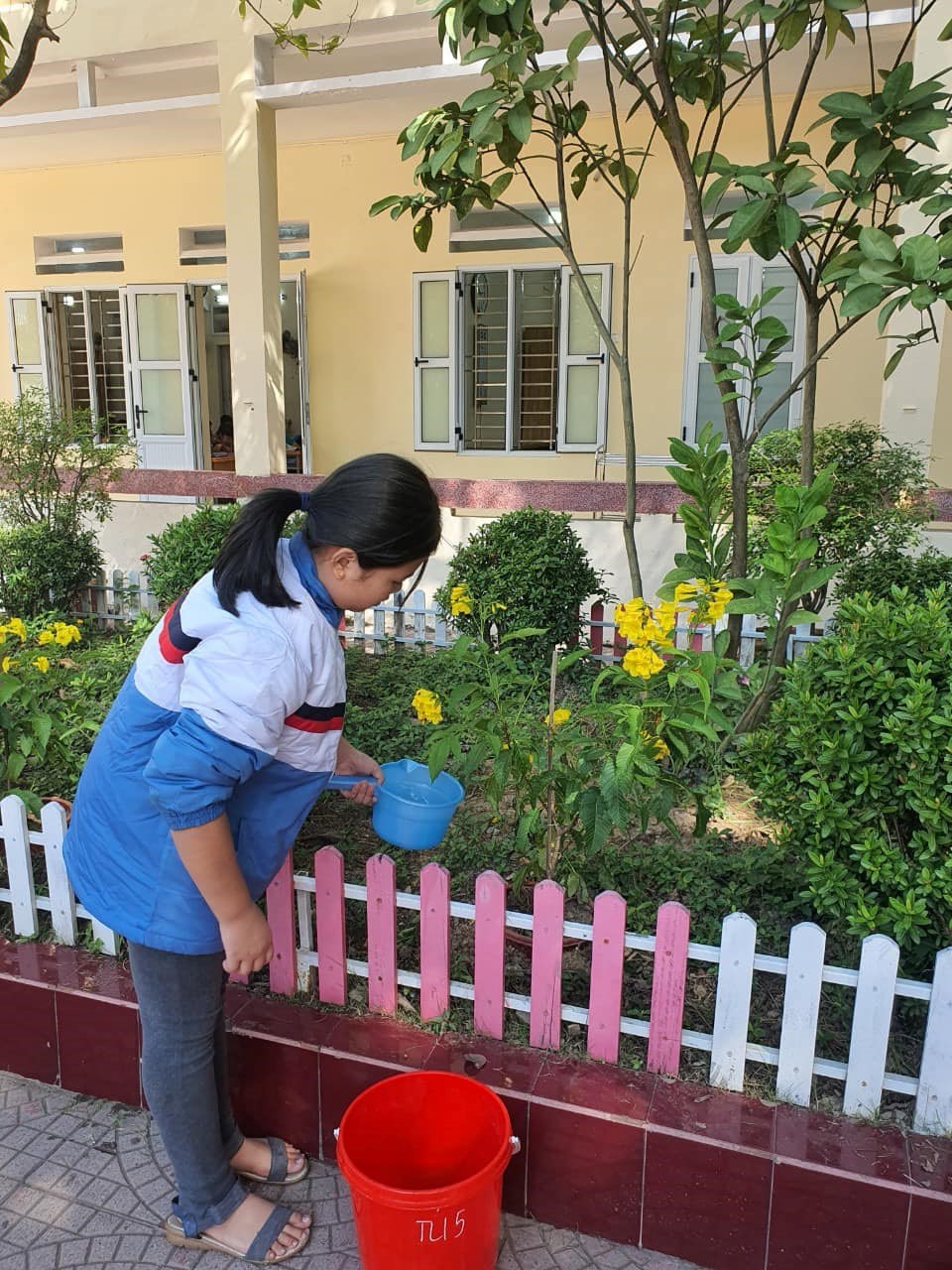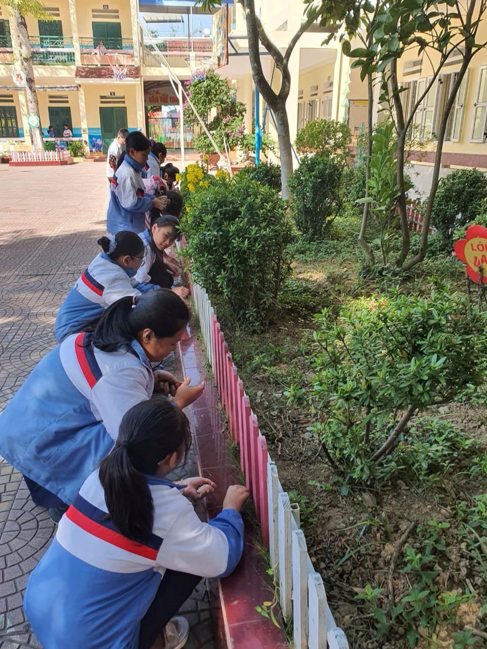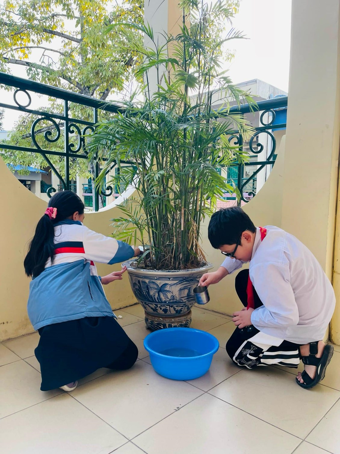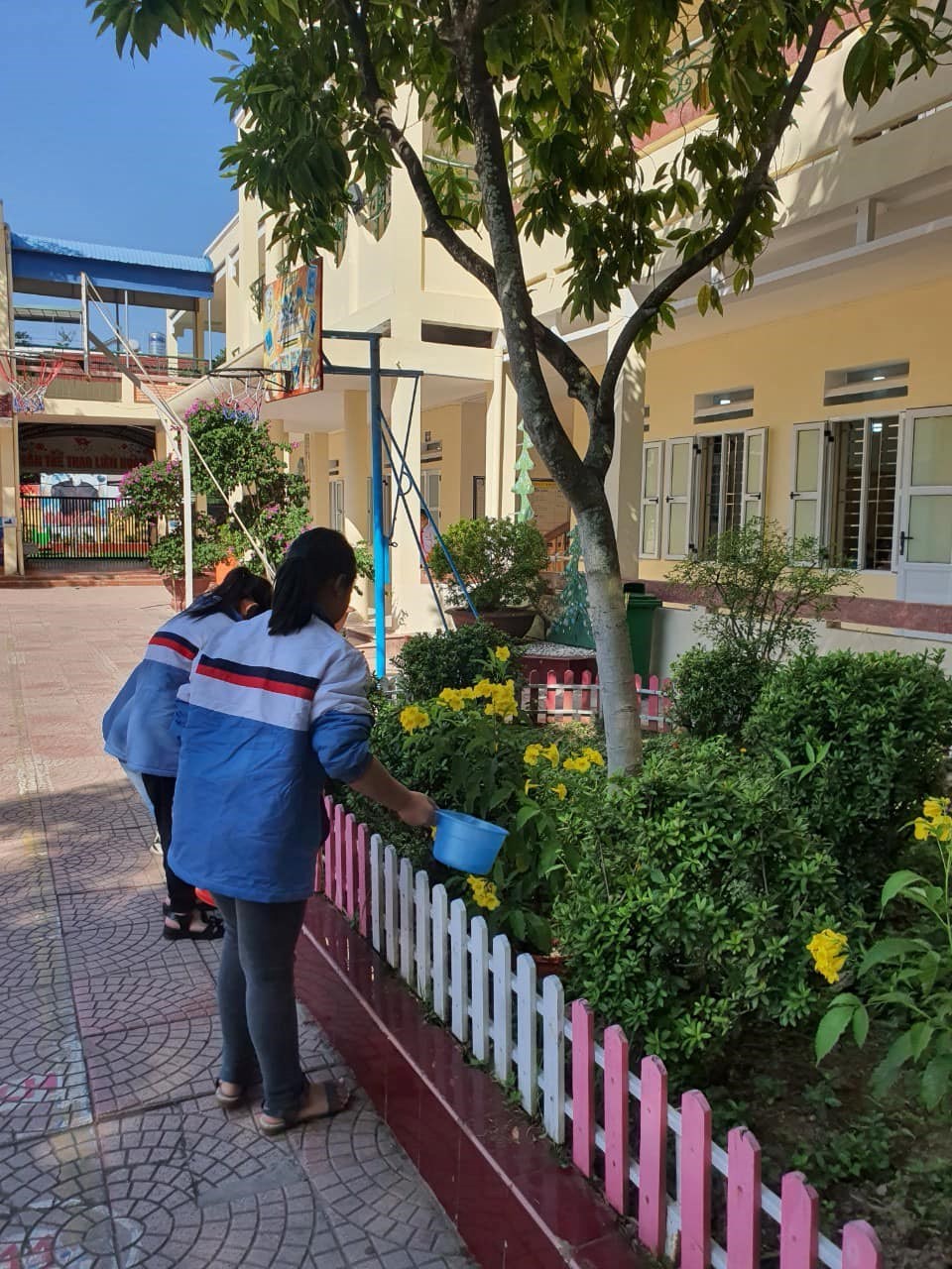 Liên đội đã triển khai công trình măng non cấp chi đội “Bồn cây em chăm”, “Ngày cuối tuần xanh” tới các bạn đội viên, thiếu niên, nhi đồng trong toàn liên đội về nội dung, kế hoạch triển khai, phần việc các lớp đảm nhiệm phụ trách chăm sóc từ 1 đến 2 chậu cây cảnh trong khuôn viên nhà trường. Bổ sung trồng thêm nhiều cây mới thay thế cho những cây bị hỏng. Quét dọn vệ sinh lớp học khuôn viên nhà trường vào chiều thứ 6 hàng tuần. Qua đó đã góp phần quan trọng trong việc giáo dục kĩ năng sống và rèn cho các bạn học sinh ý thức, trách nhiệm chung tay bảo vệ môi trường, phòng chống dịch bệnh theo mùa, xây dựng cảnh quan trường học xanh – sạch – đẹp.