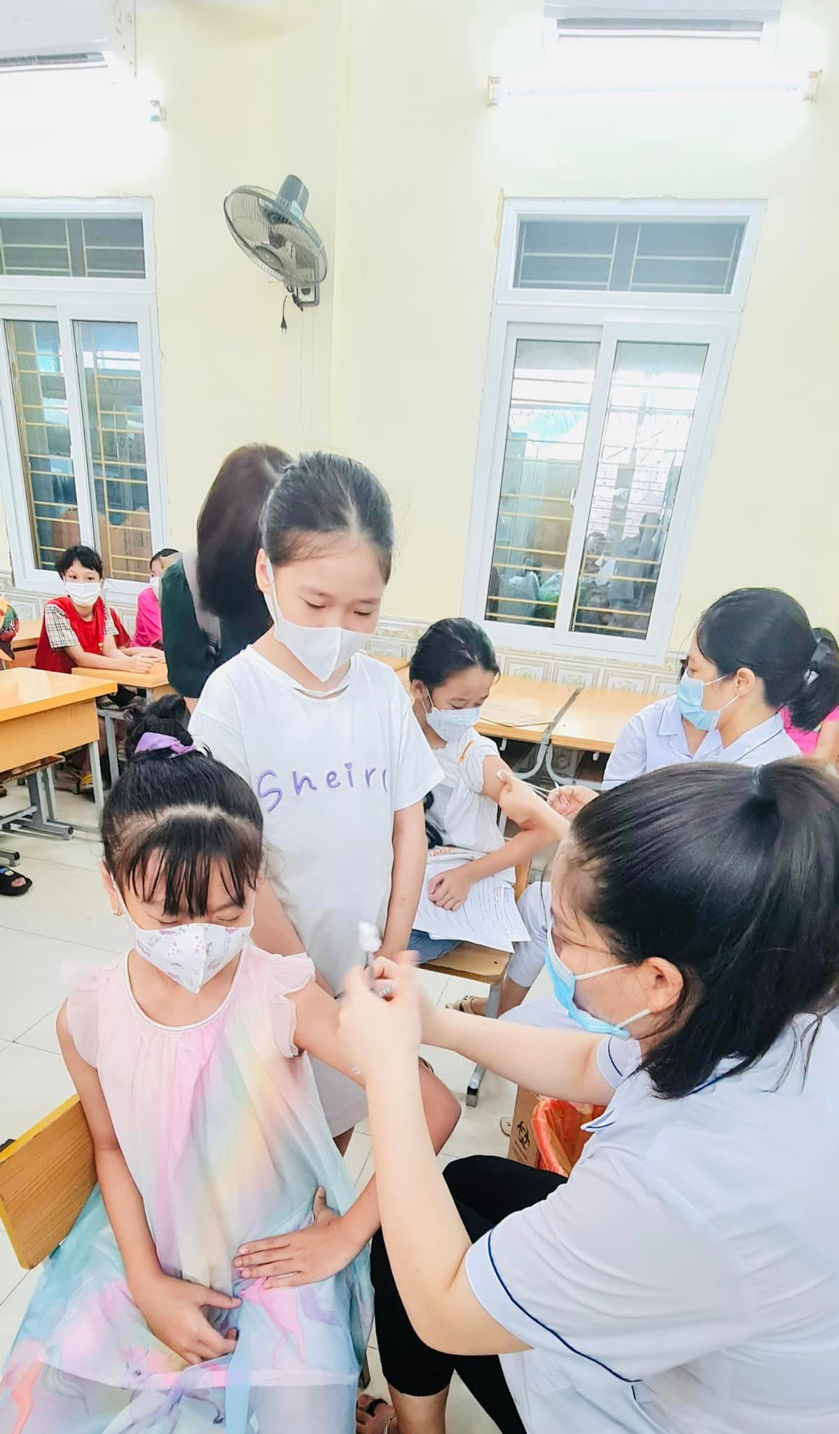 Trước những diễn biến phức tạp của dịch Covid-19; Thực hiện kế hoạch của Ủy ban nhân dân Quận Ngô Quyền về triển khai chiến dịch tiêm vắc xin phòng COVID-19 cho trẻ từ 5-11 tuổi trên địa bàn quận Ngô Quyền, sáng ngày 14/7/2022, nhà trường phối hợp cùng Trung tâm y tế Quận Ngô Quyền, trạm y tế phường Đông Khê đã tổ chức tiêm vaccine phòng chống Covid 19 mũi 2 đợt 3 cho các em học sinh từ lớp 1 đến lớp 5.