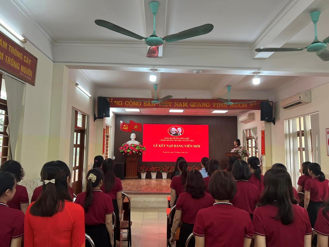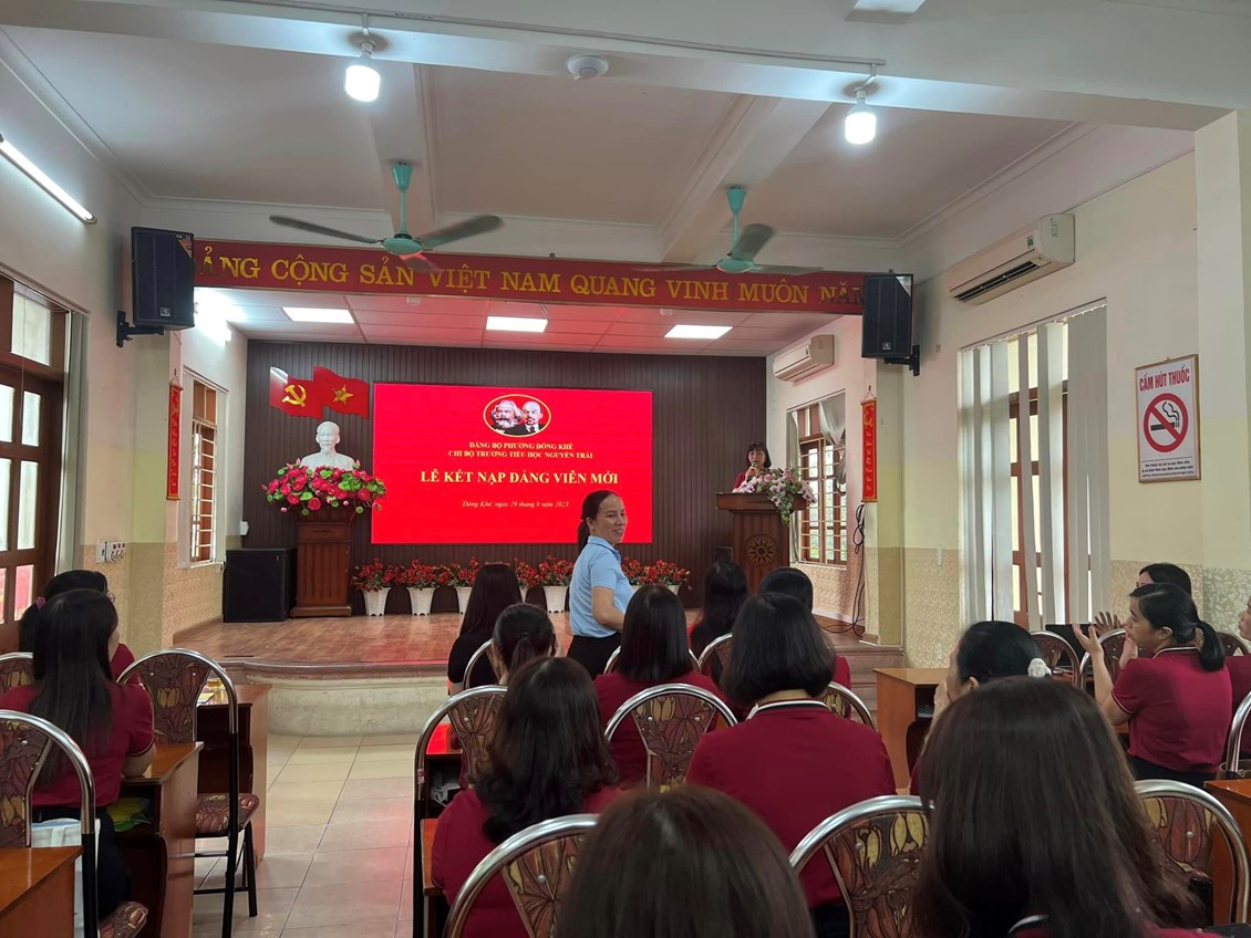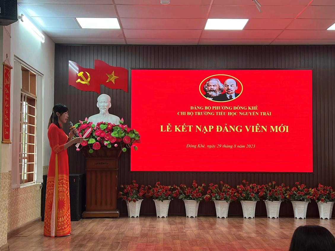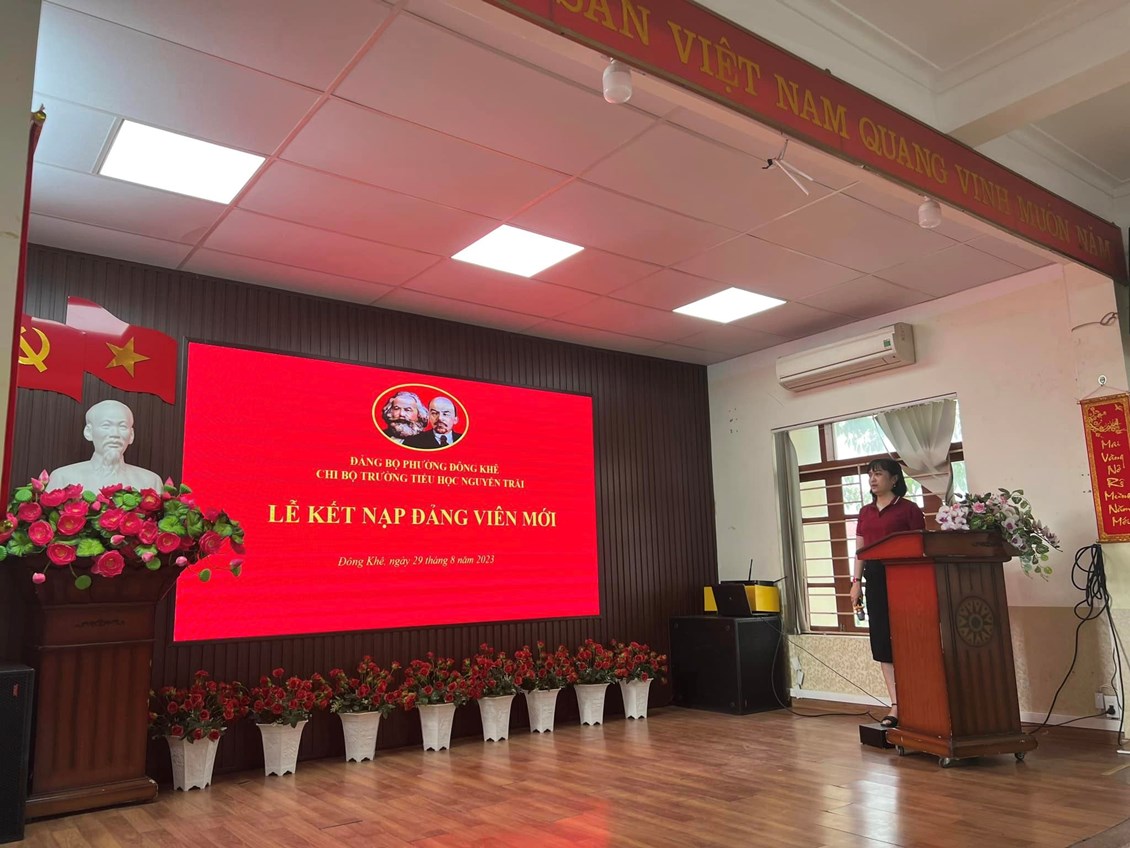 Thực hiện sự chỉ đạo của Đảng ủy phường Đông Khê. Chiều ngày 29/08/2023, Chi bộ trường Tiểu học Nguyễn Trãi đã long trọng tổ chức lễ kết nạp Đảng viên mới đối với quần chúng ưu tú: Đỗ Thị Chiên.