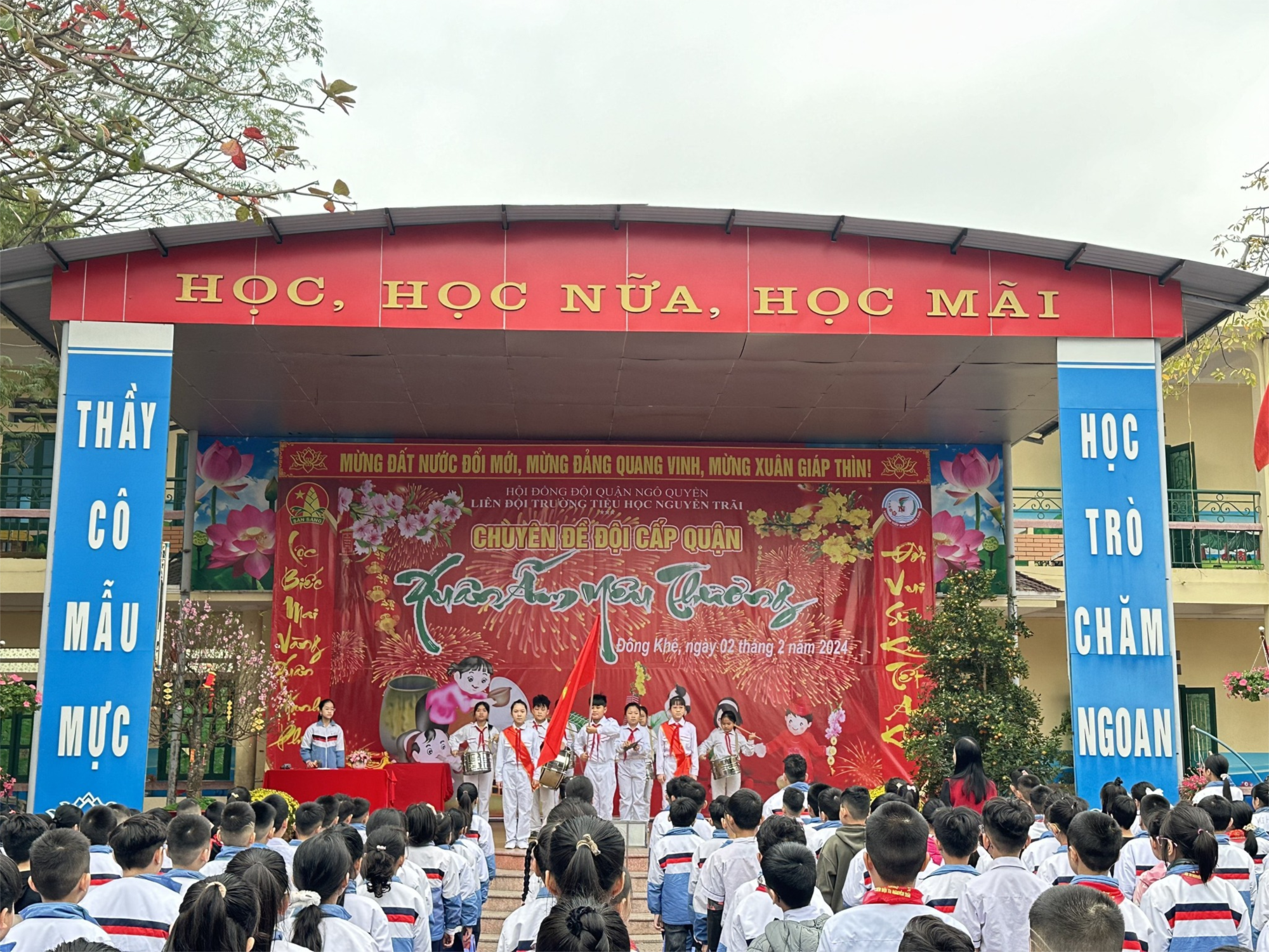 Sáng ngày 05/02/2024, Liên đội trường Tiểu học Nguyễn Trãi long trọng tổ chức lễ Chào cờ tháng 2 nhằm đánh giá, sơ kết công tác tháng 1 và triển khai kế hoạch tháng 2.