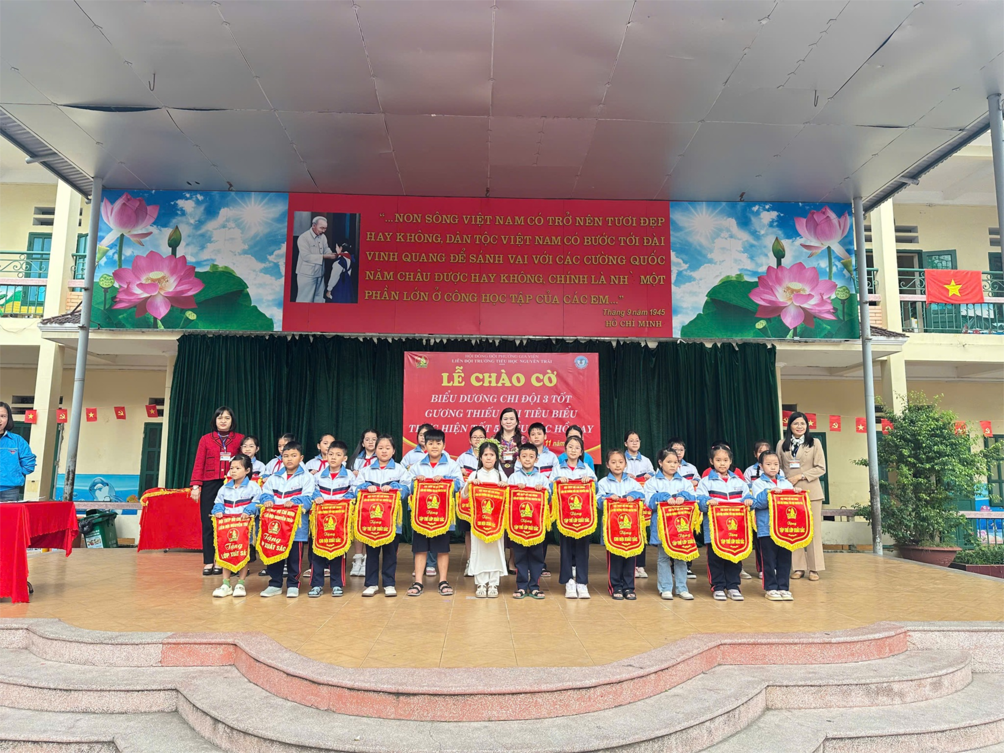 Biểu dương Chi đội 3 Tốt, gương thiếu nhi tiêu biểu thực hiện tốt 5 Điều Bác Hồ dạy. Trao cờ thi đua cho các lớp xuất sắc, niềm vui rạng rỡ trên từng gương mặt học sinh là minh chứng cho sự cố gắng không ngừng.