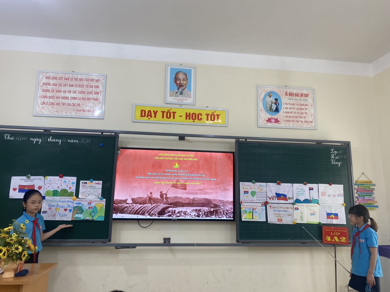 Liên đội đã phát động các em đội viên tham gia thi vẽ tranh chủ đề " Âm vang Điện Biên" và tổ chức cho học sinh triển lãm tranh nhằm giáo dục đạo đức, lòng biết ơn; bồi dưỡng lý tưởng cách mạng trong các em.