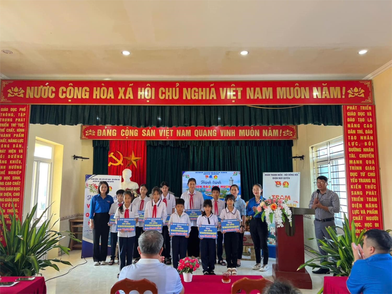 Tại chương trình, Liên đội trường Tiểu học Nguyễn Trãi đã trao 10 suất học bổng cho các em có hoàn cảnh khó khăn mỗi suất trị giá 500.000đ.