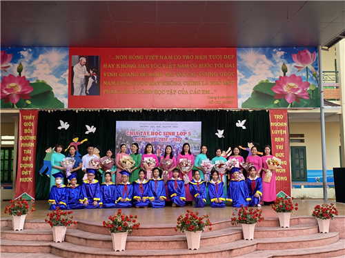 Ngày 31/05/2022, trong buổi Lễ tập trung cuối cùng của các em trên sân trường này, trường Tiểu học Nguyễn Trãi trang trọng tổ chức lễ ra trường cho 237 học sinh lớp 5, niên khoá 2017 - 2022. Các thầy cô ghi nhận sự cố gắng phấn đấu học tập, rèn luyện thể chất, tu dưỡng đạo đức của tất cả 237 học sinh lớp 5, với việc hoàn thành tốt chương trình Tiểu học, các em đã viết tiếp một trang sử vàng cho trường chúng ta. Bằng sự chuyên cần và sáng tạo của các em; với sự tận tâm, tận tụy dạy dỗ của các thầy cô giáo; được sự nuôi dưỡng chăm sóc chu đáo của quý bậc phụ huynh, sự giúp đỡ của bạn bè trong môi trường học tập tuy còn nhiều khó khăn nhưng các em đã hoàn thành chương trình học tập của mình một cách tốt đẹp. Mai ngày, dù đi đâu về đâu ... các tên gọi thân thương: Đoàn Hồng Phong, Phùng Minh Tâm, Lâm Trần Phương Linh, Nguyễn Lê Minh Tùng, …và rất nhiều tên các bạn khác mà cô không thể kể hết ra đây còn đang lưu dấu trên sân trường này, luôn còn đọng lại trong lòng Thầy Hải, cô Tú, cô Thoa, cô Hiền, cô Nga, cô Mai... và các cô giáo, thầy giáo đã dạy dỗ chăm sóc dìu dắt các em suốt 5 năm học qua, từ buổi đầu các em chập chững bước vào lớp 1. Sự trưởng thành và những thành tích của các em đạt được hôm nay không chỉ mang lại niềm tự hào, có ý nghĩa đối với các em, đối với gia đình và thầy cô mà còn là tấm gương cho lớp lớp đàn em khối 1,2,3,4 noi theo, góp phần rất lớn cho thành công chung trong sự nghiệp trồng người của nhà trường. Thay mặt nhà trường, các thầy cô giáo xin được bày tỏ lòng biết ơn sâu sắc tới tất cả các bậc PHHS lớp 5, những người đã luôn hết mình dành tình thương yêu và chăm lo cho con cái, luôn ủng hộ và sát cánh cùng chúng tôi dạy dỗ các em, góp công góp sức xây dựng trường TH Nguyễn Trãi ngày càng phát triển, xứng đáng với lòng tin yêu, mến mộ của mọi tầng lớp nhân dân trên địa bàn phường Đông Khê.