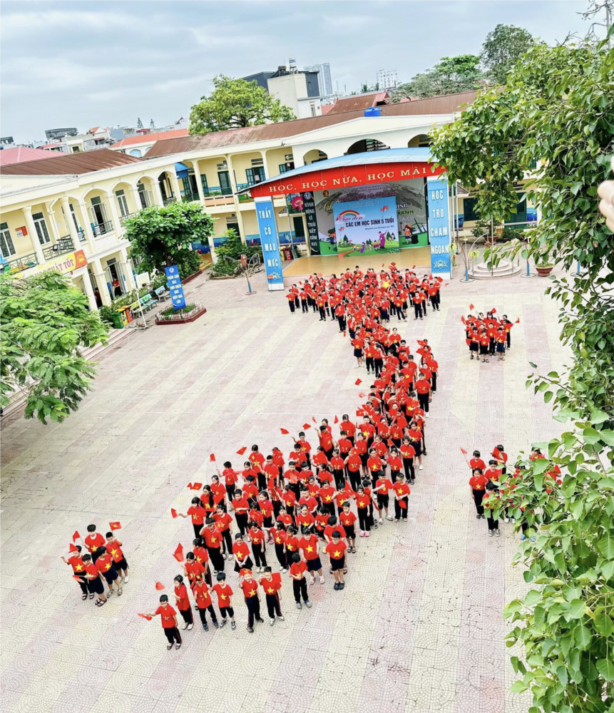 Hoạt động xếp hình bản đồ Việt Nam với sự tham gia của học sinh các lớp đã tạo nên hình ảnh thiêng liêng, sống động về non sông gấm vóc Việt Nam.
