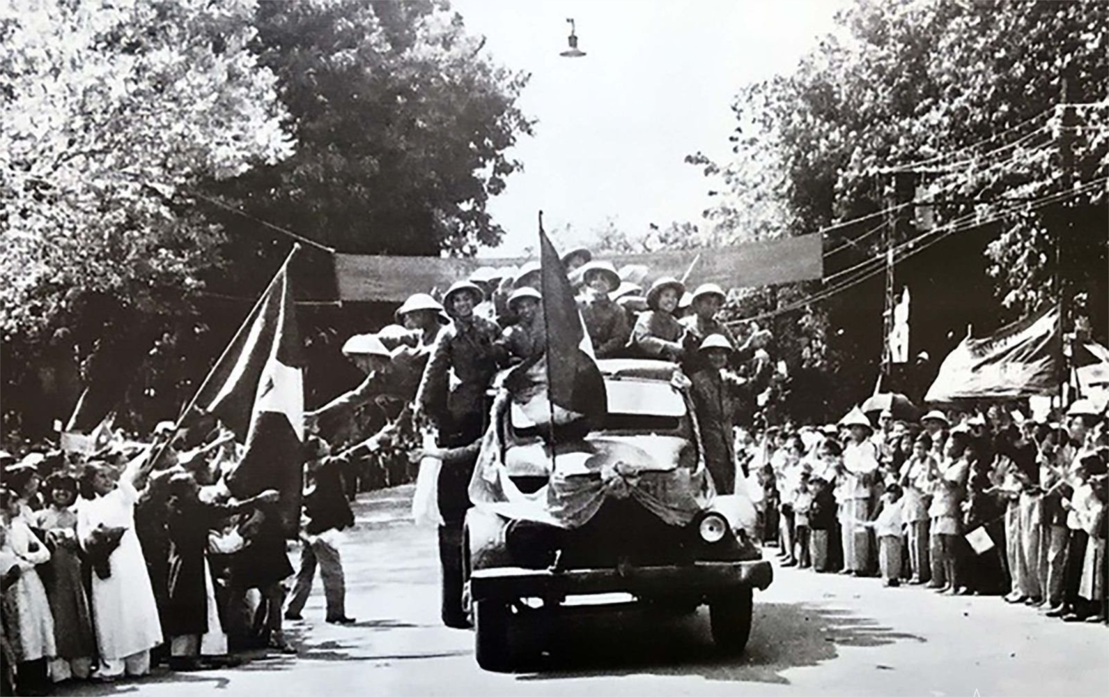 Ngày 10/10/1954, Thủ đô Hà Nội hân hoan đón chào đoàn quân chiến thắng trở về. Ảnh tư liệu