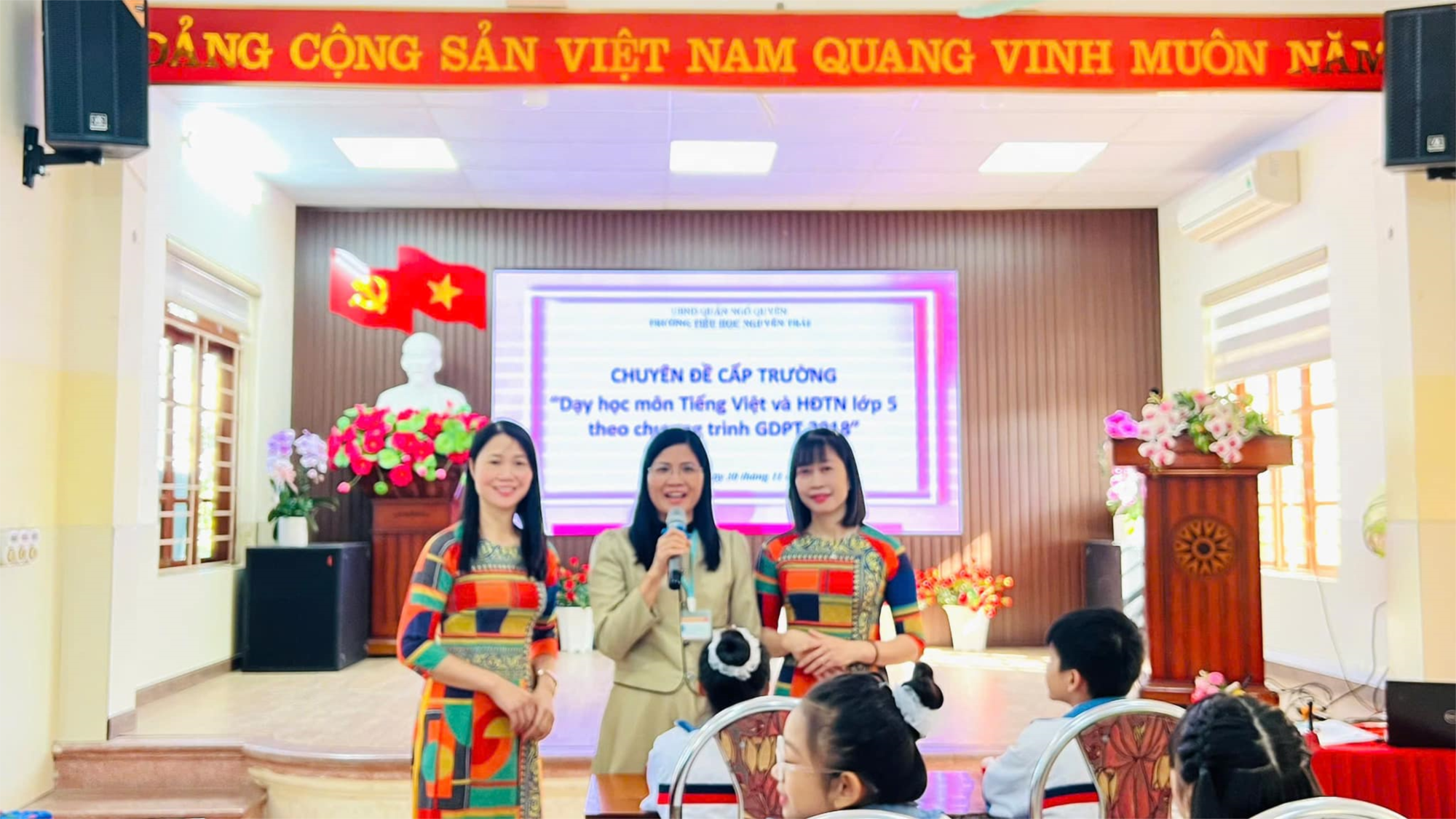 Chiều ngày 30/11/2024, trường Tiểu học Nguyễn Trãi đã tổ chức chuyên đề cấp trường “Dạy học môn Tiếng Việt và Hoạt động trải nghiệm lớp 5 theo chương trình GDPT 2018”. Đây là một hoạt động thiết thực trong kế hoạch sinh hoạt chuyên môn của nhà trường.